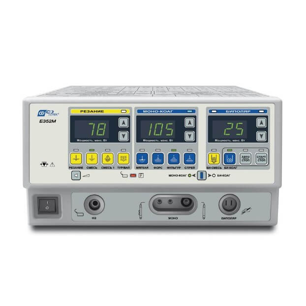 - возможностью установки четырех режимов одновременно: монополярного и биполярного резания, монополярной и биполярной коагуляции