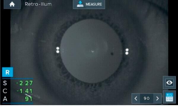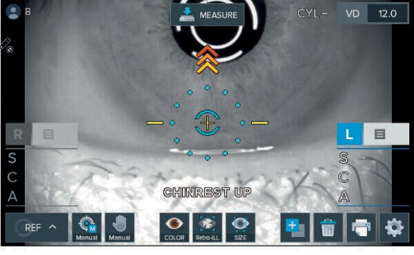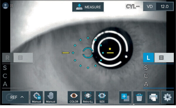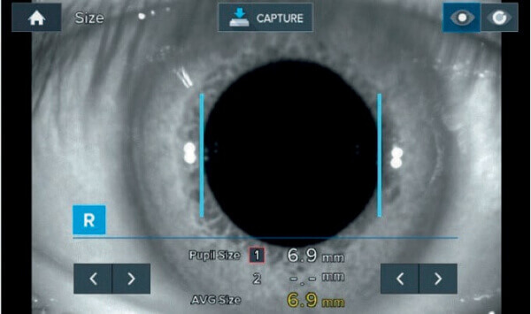 - Автоматическое измерение диаметра зрачка и радужки. Прибор позволяет измерить диаметры радужки и зрачка. Есть возможность выполнить рефрактометрию даже при маленьком зрачке диаметром от 2 мм.