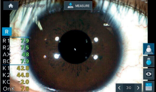 - Режим цветного просмотра переднего отрезка. Полноцветная камера и осмотр переднего отрезка в белом свете позволяет оценить общее состояние роговицы, а также наилучшим образом подобрать контактные линзы.