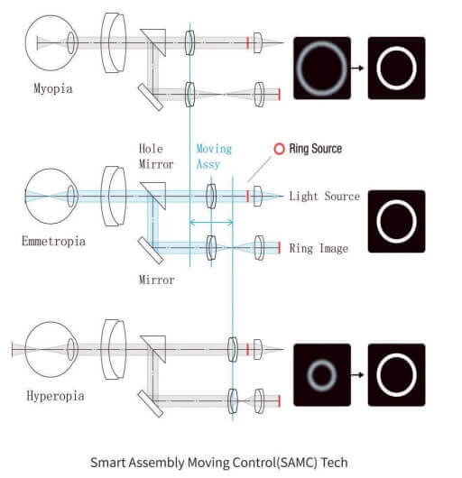 - Функция автотрекинга. Функция автотрекинга позволяет автоматически отслеживать движение глаз пациента, облегчая измерение. Точная подстройка осуществляется при помощи джойстика.