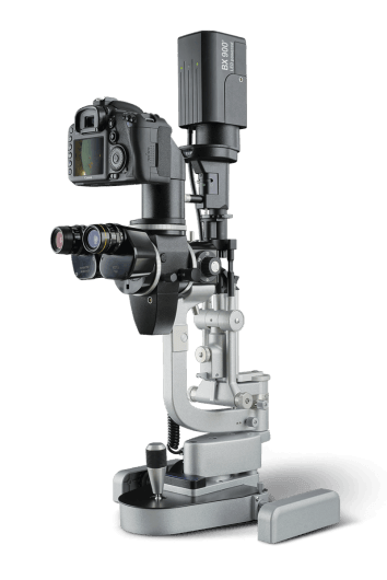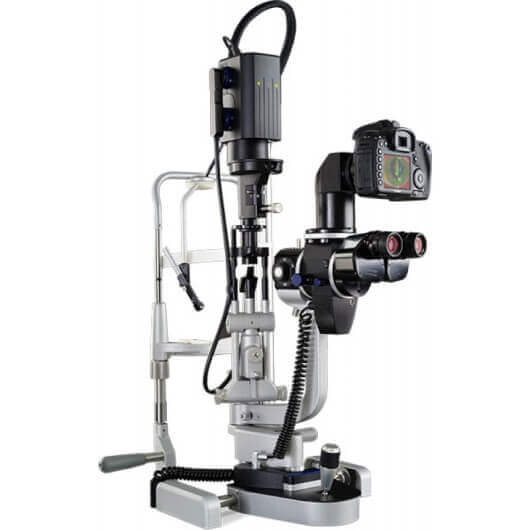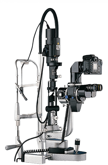 Различные варианты адаптеров позволяют подключить к щелевой лампе практически любую модель профессиональных фотоаппаратов и 35мм камер представленных в настоящее время на рынке. Камера монтируется сверху от тела микроскопа, позволяя упростить доступ к пациенту, что необходимо когда фотографирование производится через линзу, удерживаемую врачом в руках.