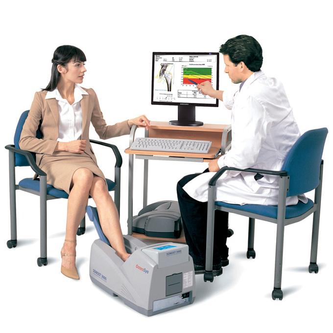 SONOST-3000 — современный ультразвуковой денситометр производства OsteoSys, предназначенный для экспресс-оценки состояния костной ткани и выявления пациентов с риском остеопороза. Благодаря использованию ультразвука вместо рентгеновского излучения обследование полностью безопасно и может проводиться без лучевой нагрузки на пациента.