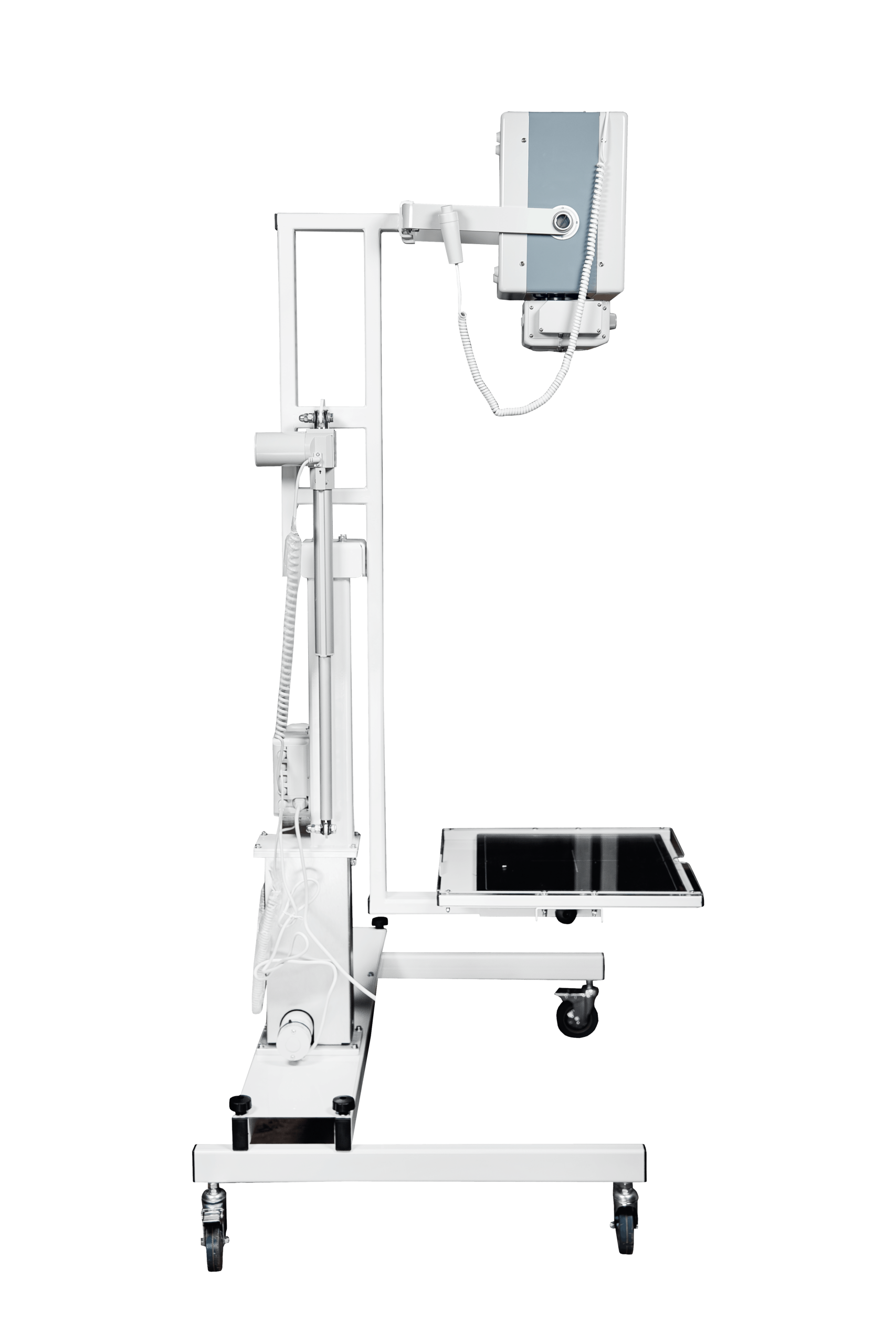 — Многофункциональный подъемно-поворотный штатив с электромеханическим приводом для синхронизированного перемещения детектора и излучателя, управляется специальным пультом и способен как подниматься, так и поворачиваться на 180 градусов;