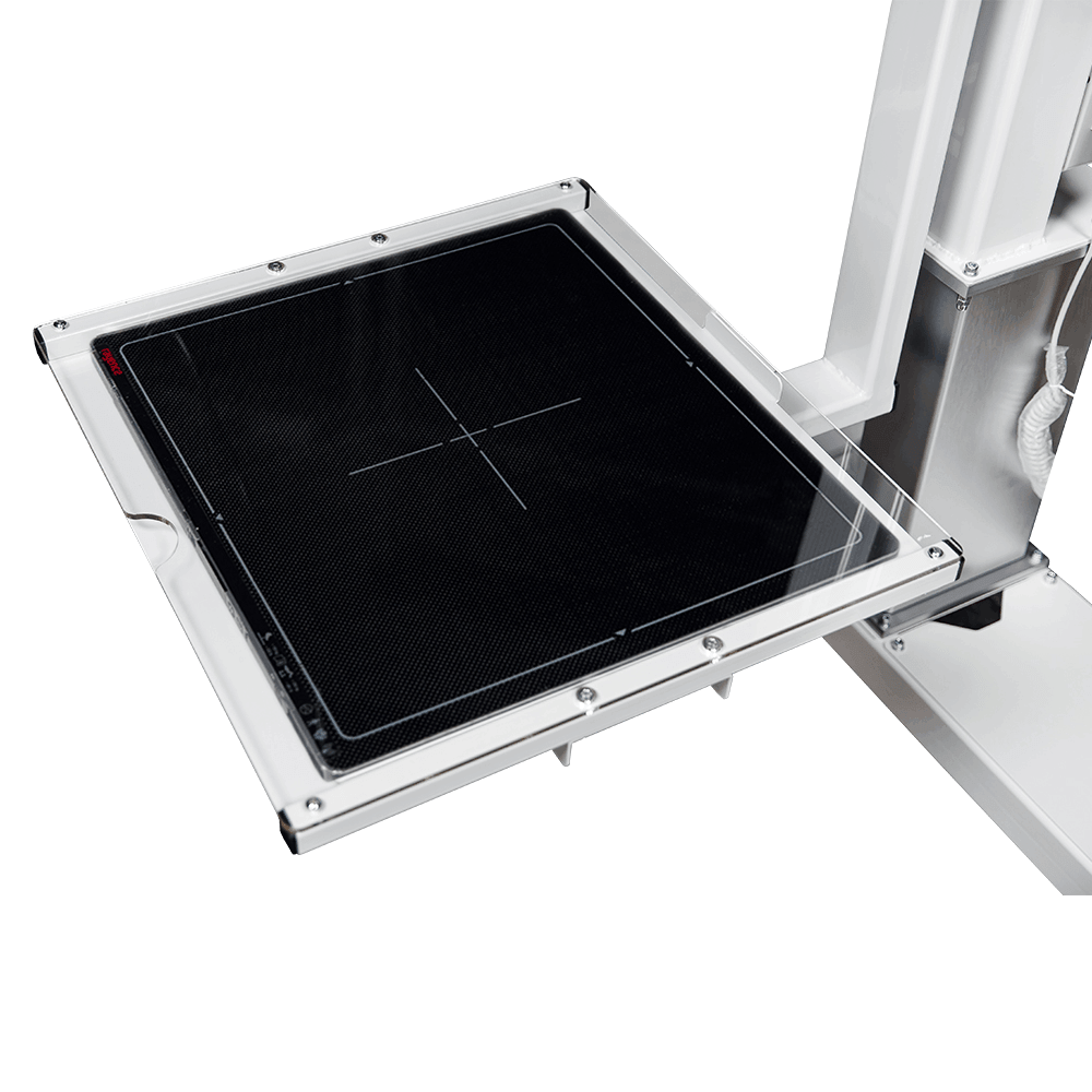 — Максимальный размер рабочего поля 430х430мм при фокусном расстоянии 120см.
